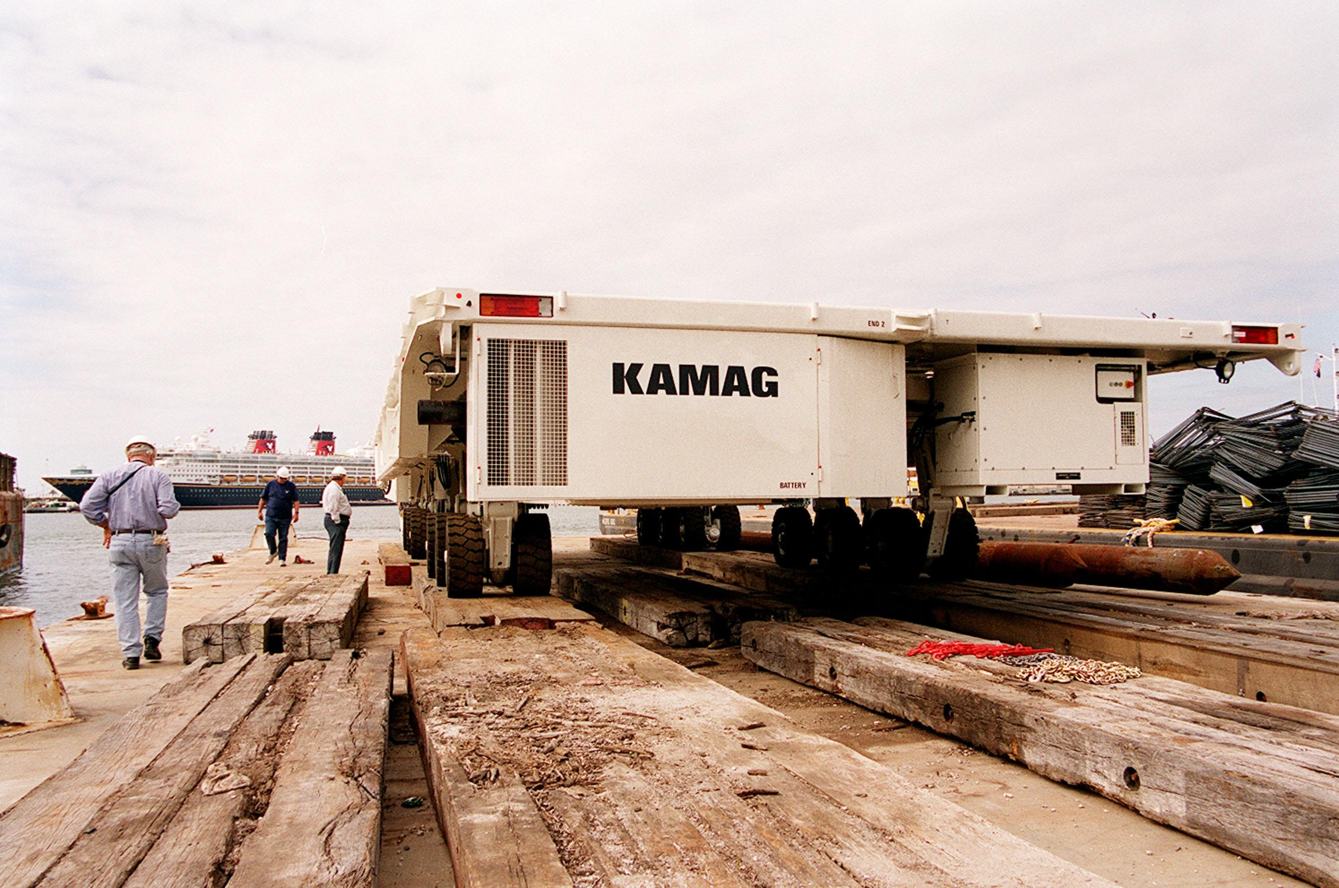 24 twin wheel sets can be steered independently of one another and enable the transporter to move forwards, backwards and sideways or diagonally, or to rotate around its own axis like a merry-go-round. All each have separate brake and stabilization lifting systems, if you will a