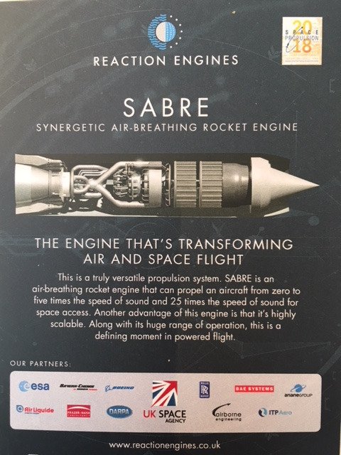 And then I noticed this https://twitter.com/reactionengines?lang=en and scroll down to May 15 where there are two pictures of the presentation documents for Space Propulsion 2018. At the bottom of the picture showing the Sabre engine is a list of partners working with Reaction Engines. Apart from the expected ones like ESA, UK Space Agency, Airborne Engineering, Rolls Royce and BAe Systems etc... There is ARIANE GROUP... Interesting!!